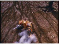 Sting King falls to the Earth, impacting with a smoke burst. |
