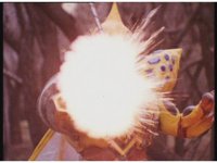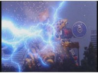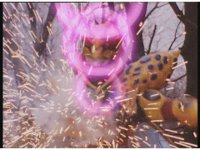 As Astro Megazord remains standing behind him, Sting King crackles with electricity and sparks, finally turning into a ball of shimmering energy that floats into the sky and explodes massively. |