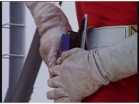 Zoom in on Red in the cockpit, gripping and looking at his Battlizer. |