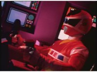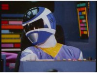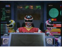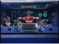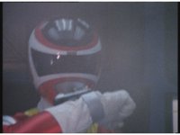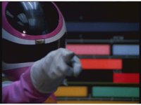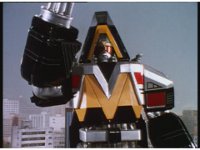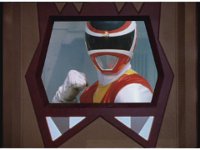 The Delta Megazord chest piece attempts to lock onto Astro Megazord's body and fails, causing the cockpit to shake violently, until Red takes control, causing it to try again and success, fully locking together. |