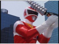 Red talks into his Battlizer again, but Delta Megazord fires again on Astro Megazord. |