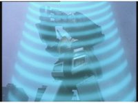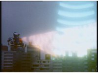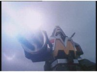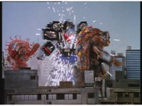 The beam tug-of-war for control of Delta Megazord continues, zoom in on Red nod-talking in cockpit, as Delta Megazord writhes about. |