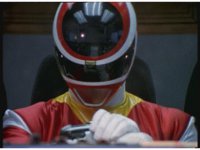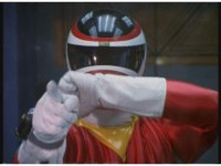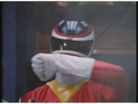 Zoom in on the cockpit as Red raises fists, then punches both forth, before pressing 01 on the Battlizer. |