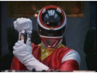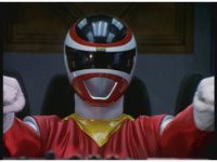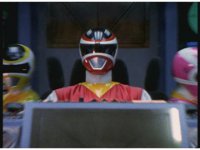 The Rangers regroup around Red, who gets up and summons into his left wrist. |