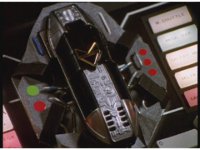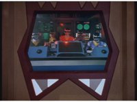 Zoom in on Red, as he looks down at the console before him, presses a few keys, causing the keyboard to flip over and reveal a new interface. He detaches the Battlizer and sticks it within it, causing lights to flash. Zoom in on Red, nod-talking and gripping controls. |
