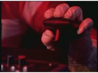 Close-up of Astro Morpher being opened, then a female finger pressing 3-3-5-Enter. |
