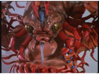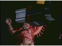 Red turns away from the rooftop monster horde to see giant Destructipede firing on the city. |
