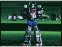 Close-up of the Astro Megazord head connecting, eyes lighting up. |