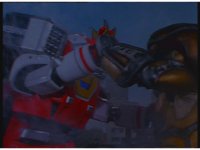 Darkened; cuts follow-ups of V1 punching him in the head several times. Cuts all prior Lionizer mostly usable battle footage from the ep, though some of it including Silver Ranger. They also cut a mostly usable cyborg Ecliptor battle. |