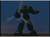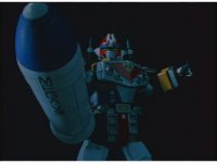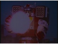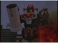 Lionizer reacts to the Mega Voyager, then fires his bazooka at it. |