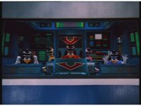 Pan up from a speaker to Red, nod-talking, then pulling the docking lever, causing Mega V1 to leap up. |