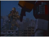Mega V1 grabs Lionizer and pitches him across the city, where he lands perfectly, and fires back his bazooka, spark bursting V1, shaking the cockpit. |