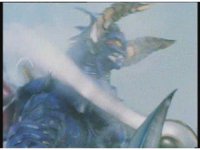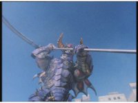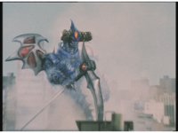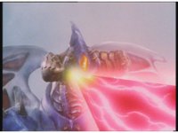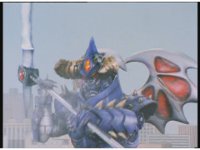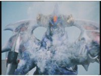 Body Switcher recovers and fires his eyebeams at Mega Voyager, who deflects them with its shield, before firing a beam back from its saber, bursting the monster's chest. |