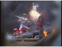 Flashback to Silver Ranger saving Red Ranger and getting blown up. |