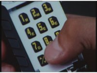 Close-up of hand pressing 2-5-8-0-enter on Digimorpher keypad, making the word "MEGA" appear in the display, causing golden flashes of energy. |
