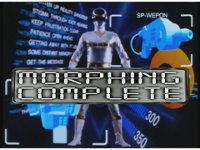 Silver Ranger spins around, text & displays appear, including "MORPHING COMPLETE". |
