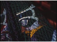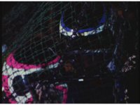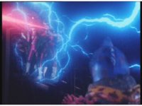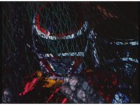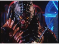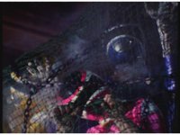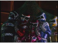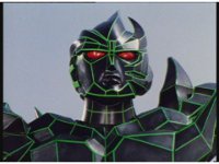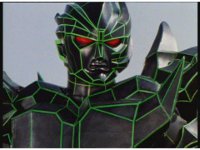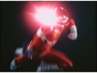In the net, Red readies his Battlizer, pressing 02 and unleashing red beams that crackle and spark burst the net, freeing the Rangers, to which blue Crocotox reacts. |