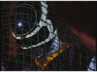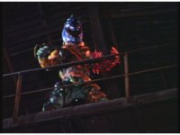 The five Galaxy Gliding Rangers pass into the warehouse, over red Crocotox's head. Blue Crocotox sees the approaching team, fires a green beam down, ensnaring them off of their Gliders, as the beam turns into a net, hoisting them upward. |