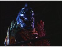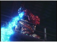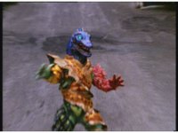 Blue Crocotox falls and rolls, gets up, fires his mouth blast at the approaching Astro Delta Megazord, bursting around it, but never stopping its progression. |