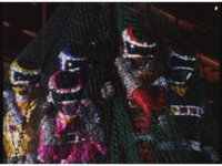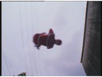 The netted Rangers are hoisted high up in the air, red Crocotox watching from below, Black nod-talking, Blue watching from above. |