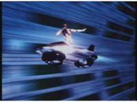 Silver lands on his Silver Glider in the cybertunnel, riding it down the endless corridor. |
