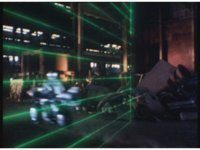Silver glides into the warehouse, just as blue Crocotox fires the green net beam forth. |