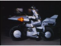 Silver Ranger on his Silver Cycle exits the cybertunnel. |
