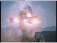 Astro Delta Megazord fires its shoulder-based Gyro Blasters. |