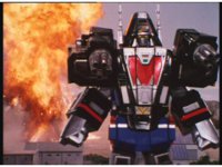The Shuttle head docks atop the Astro Megaship as it finishes transforming into the body of the Astro Megazord. |