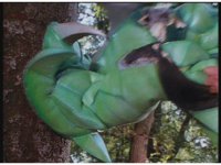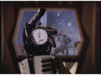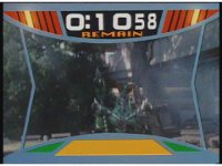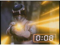 Preying Mantis keeps Silver suspended in the air, as the clock runs down, Red & Pink reaching out in protest, Silver struggling. |