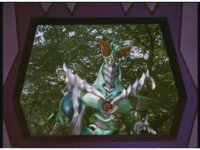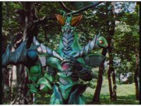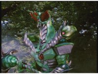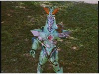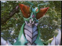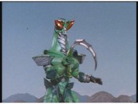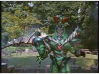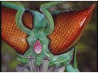 Preying Mantis taunts the trapped Ranger, zoom in as he talks at him. |