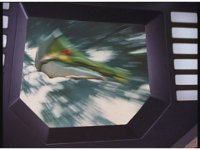 Zoom in on Red in cockpit as he points forth, then raises a fist, then spreading hand, grabs a central control stick, jerking it in a Z pattern with energy effects. |