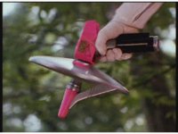 The boomerblade spins in the air, when Mega Voyager snatches it suddenly. Red nod-talks and gestures in cockpit, then grips controls, causing Mega Voyager to toss the bladerang back, hitting Mantis and sparking him off his feet. |