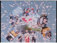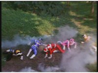 Rangers spark burst as they're flung into the air by fireball bursts. |