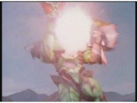 Preying Mantis bursts, Mega Voyager turns its back to him, as he falls and explodes massively, before lowering V3 Missile triumphantly. |