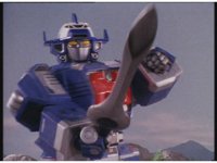 The Delta Megazord helmet attaches to Astro Megazord's head. |