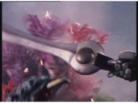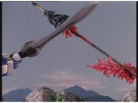 Clashing blade to staff, Astro Megazord sparkily slashes Coralizer until he falls, but quickly gets back up. |