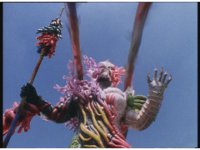 Coralizer spark bursts brightly, allowing Astro Megazord to yank on his tentacles, flipping him completely over. |