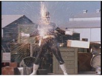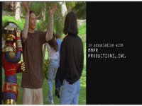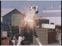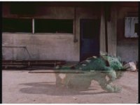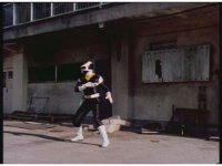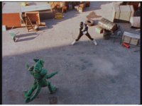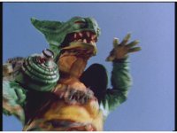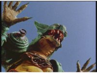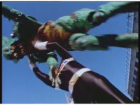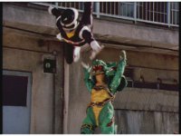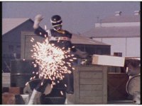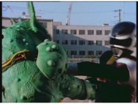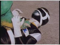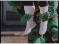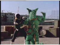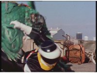 Mirror-flipped; split. Cuts follow-ups of other Rangers arriving, then all using weapons on monster. |