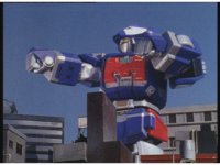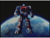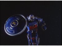 The Shuttle does one final loop before approaching the Megaship, which is in the process of transforming, followed by the Shuttle transforming into the head. |