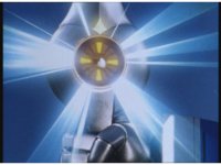 Astro Megazord's Saber charges up with a yellow light. |