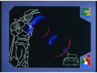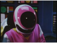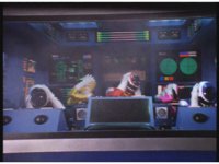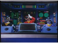 Continued from a few shots ago, Pink ceases clutching her ears, and works at her station, an image of Batterax and his ear-waves appears on a screen. Zoom out as she talks to her teammates in the cockpit. |