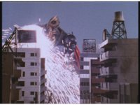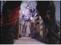 Herky-jerky zoom in on Astro Megazord, spark bursting. |