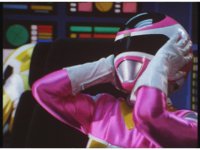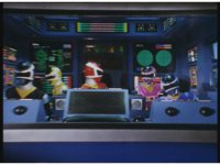 The Rangers clutch their ears in the cockpit, zoom in on Black, talking. Then close on Red also talking while clutching. Finally, Pink doing the same. |
