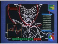 Display image of Batterax having a sonic tug of war with a van appears on a screen. |