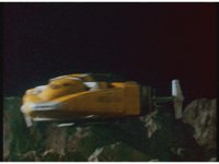 The five Mega V Zords take off from the moon's surface and head into space. |
