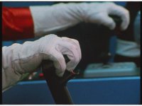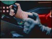 Close on Red's hands as he pulls on one of the control sticks. |