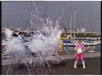 Rangers spark burst as they're flung into the air by fireball bursts. |