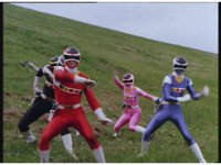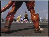 The Rangers fall and roll, Red getting back up and summoning into his left wrist. |