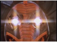 Datascammer suddenly turns and sees Red leaping in with a punch, he flashes his eyes, causing lights to flash around the Ranger, leading to his missing the monster on his way down. |